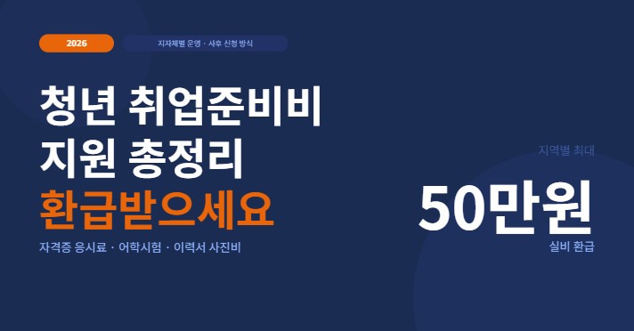 자격증 응시료, 어학시험 응시료, 이력서 사진 촬영비 등 취업 준비에 쓴 비용을 전국 각 지자체에서 최대 10~50만원까지 실비로 환급해줍니다.