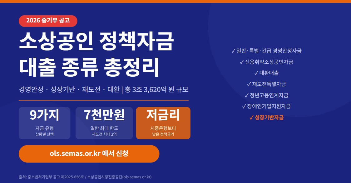 ② 2026 소상공인 정책자금 9가지 종류 한눈에 비교